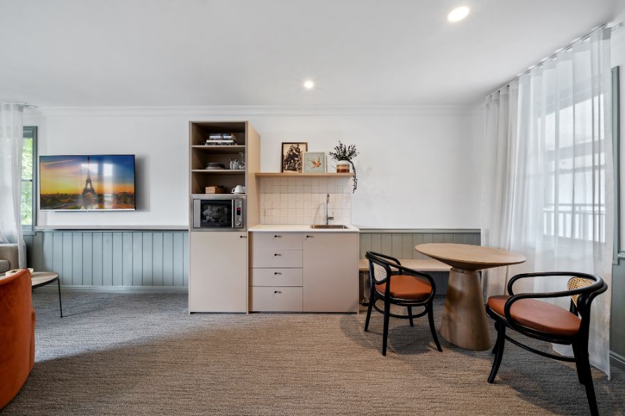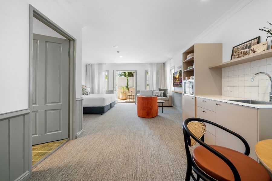 A contemporary spacious studio with your own private courtyard to enjoy the lush hotel garden views. You’ll be staying in luxury with special touches through the studio including Australian made premium bathroom amenities, luxury towels, and linen.